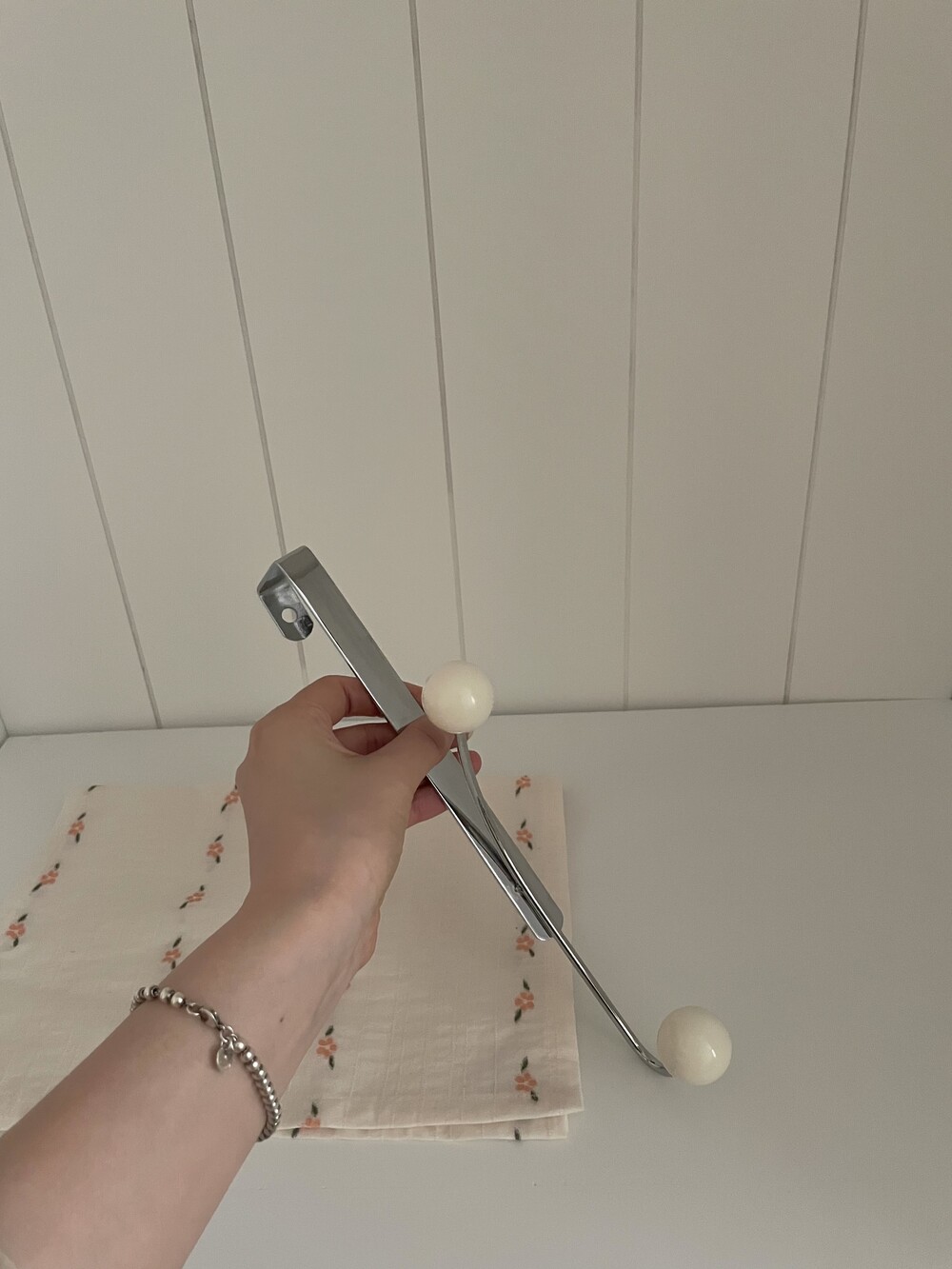 스테인레스 걸이와 우드볼의 조화가
