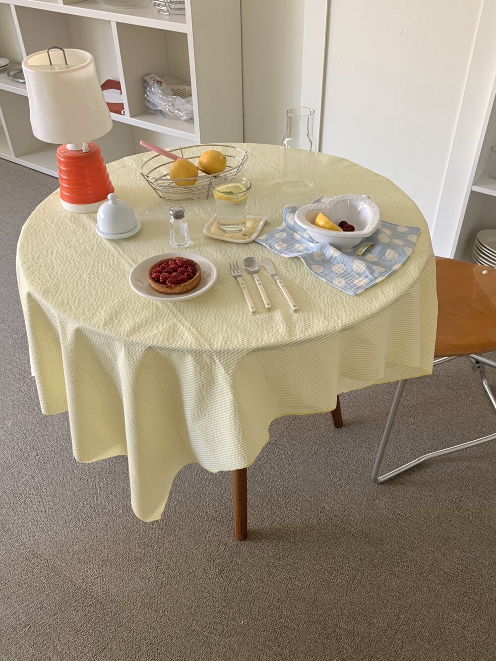 매치된 원형테이블 지름 80cm로 떨어지는길이 적당합니다